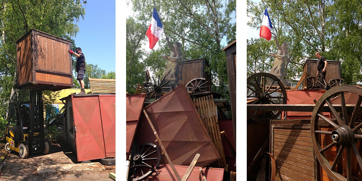 Barrikaden-Bau zur Darstellung der franz. Revolution